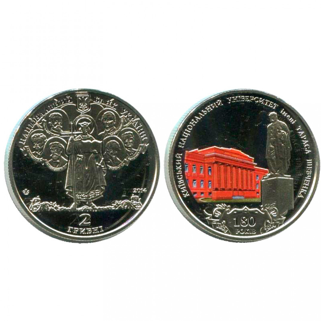 2 ГРИВНЫ - 180 лет Киевскому национальному университету имени Тараса Шевченко ,Украина,2014 год