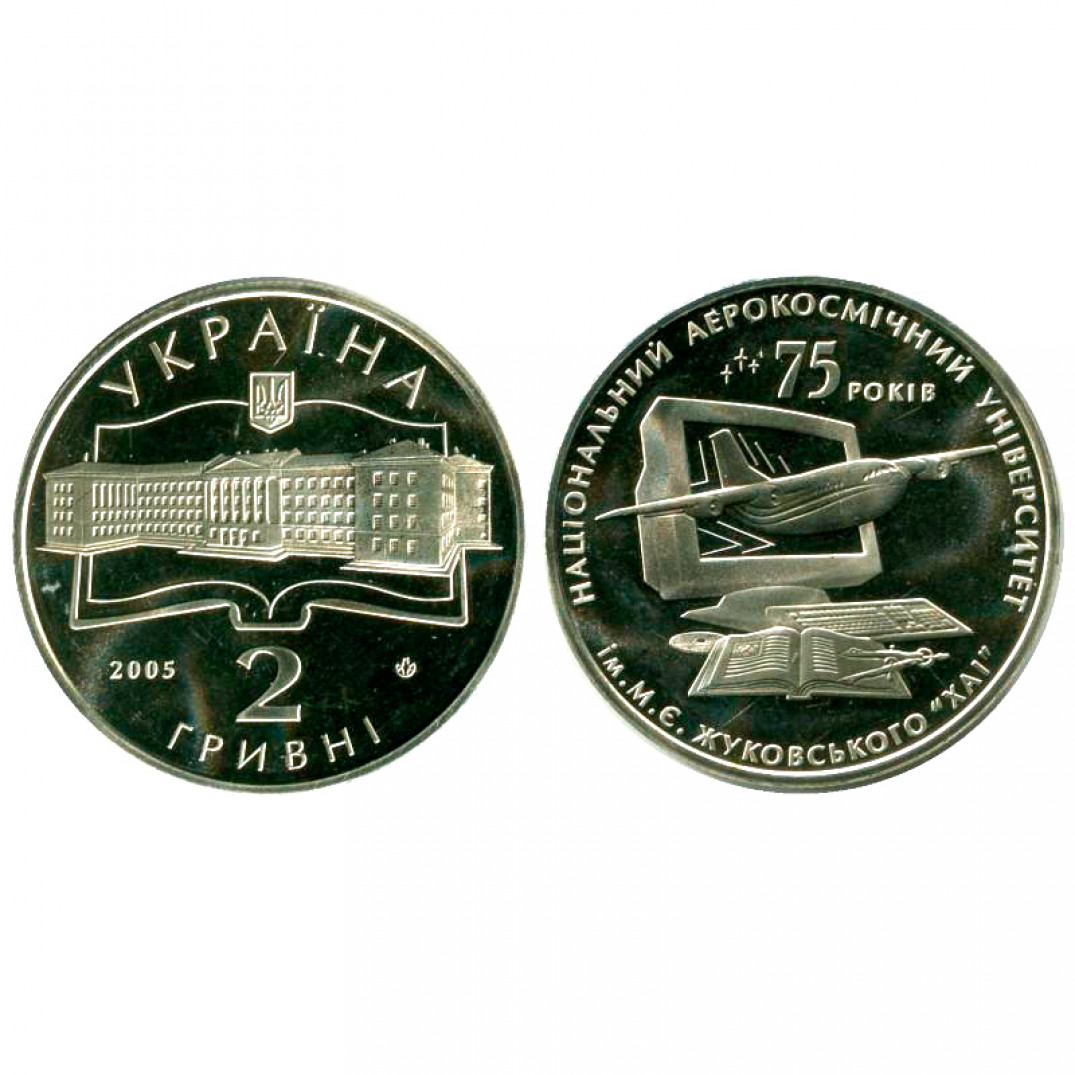 2 гривны - 75 лет Харьковском национальном аэрокосмическом университета им. Жуковского, Украина, 2005 год