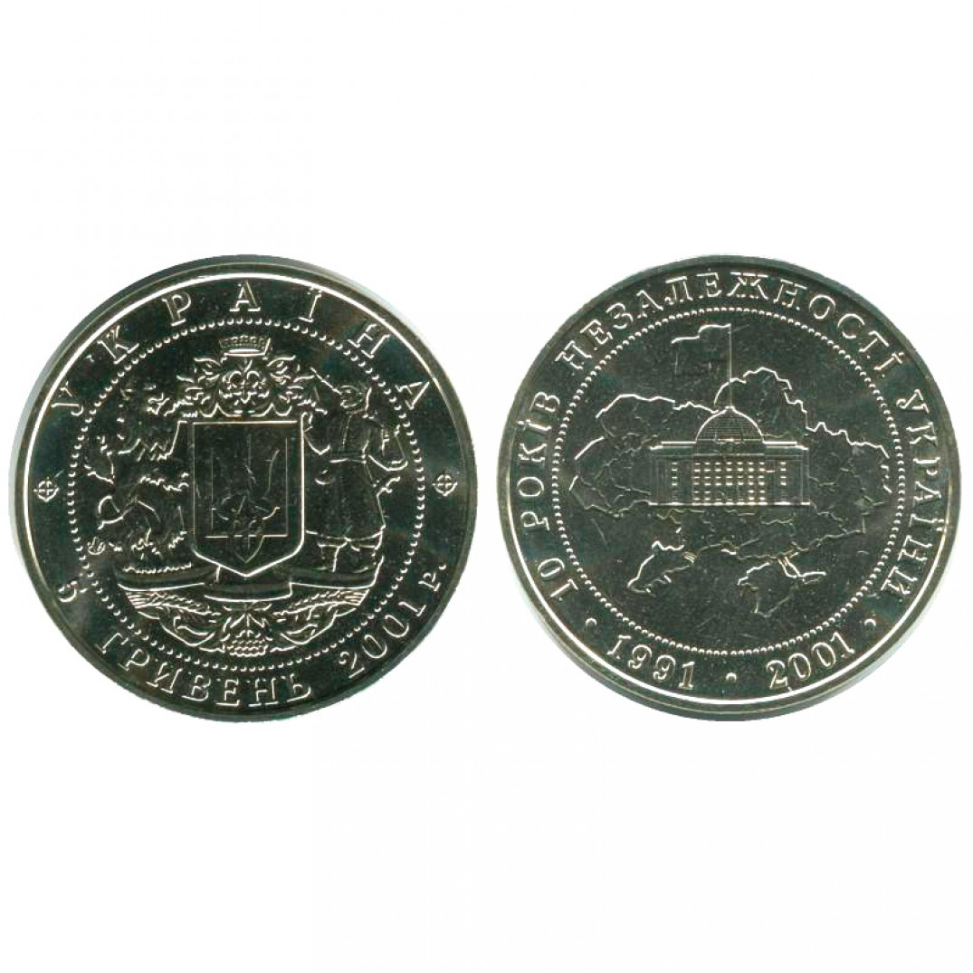 5 гривен - 10 лет провозглашения независимости, Украина, 2001 год