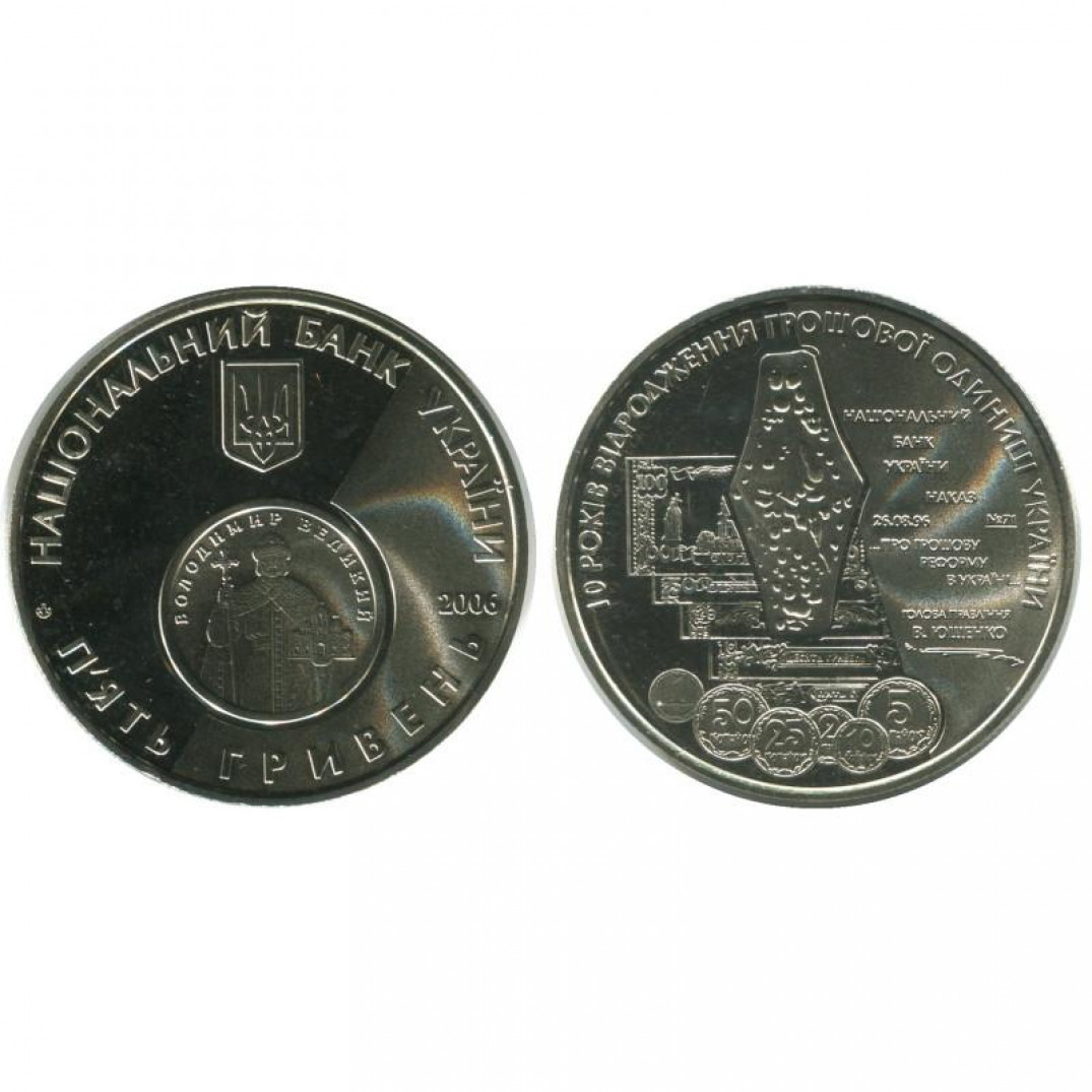 5 гривен - 10 лет возрождения денежной единицы Украины - гривны, Украина, 2006 год