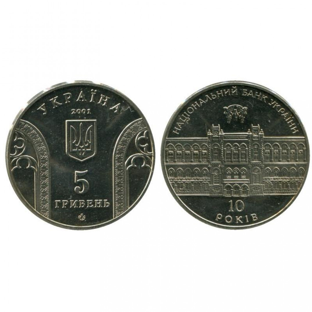 5 гривен - 10-летие Национального банка Украины, Украина,2001 год