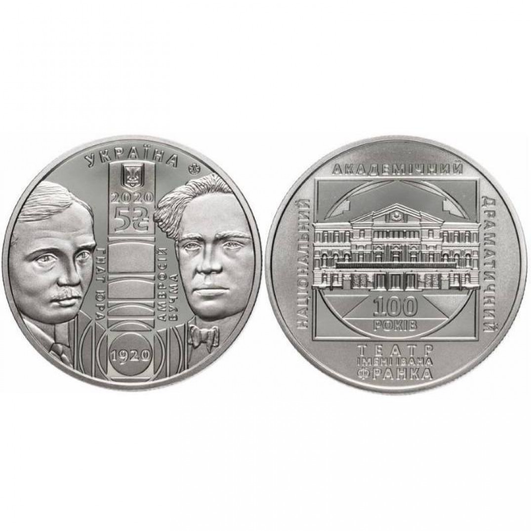 5 гривен - 100 лет Национальному академическому драматическому театру имени Ивана Франко, Украина, 2020 год