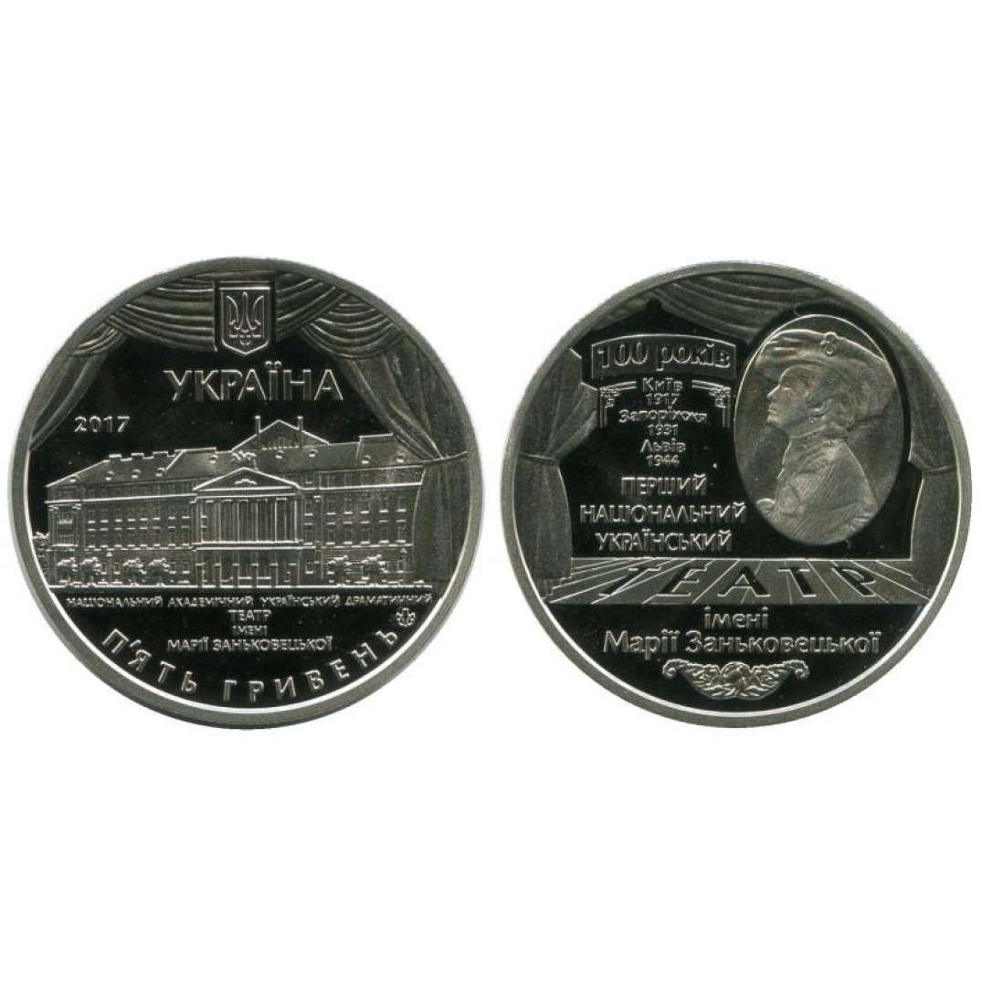 5 гривен - 100 лет Национальному академическому украинскому драматическому театру имени Марии Заньковецкой, Украина, 2017 год