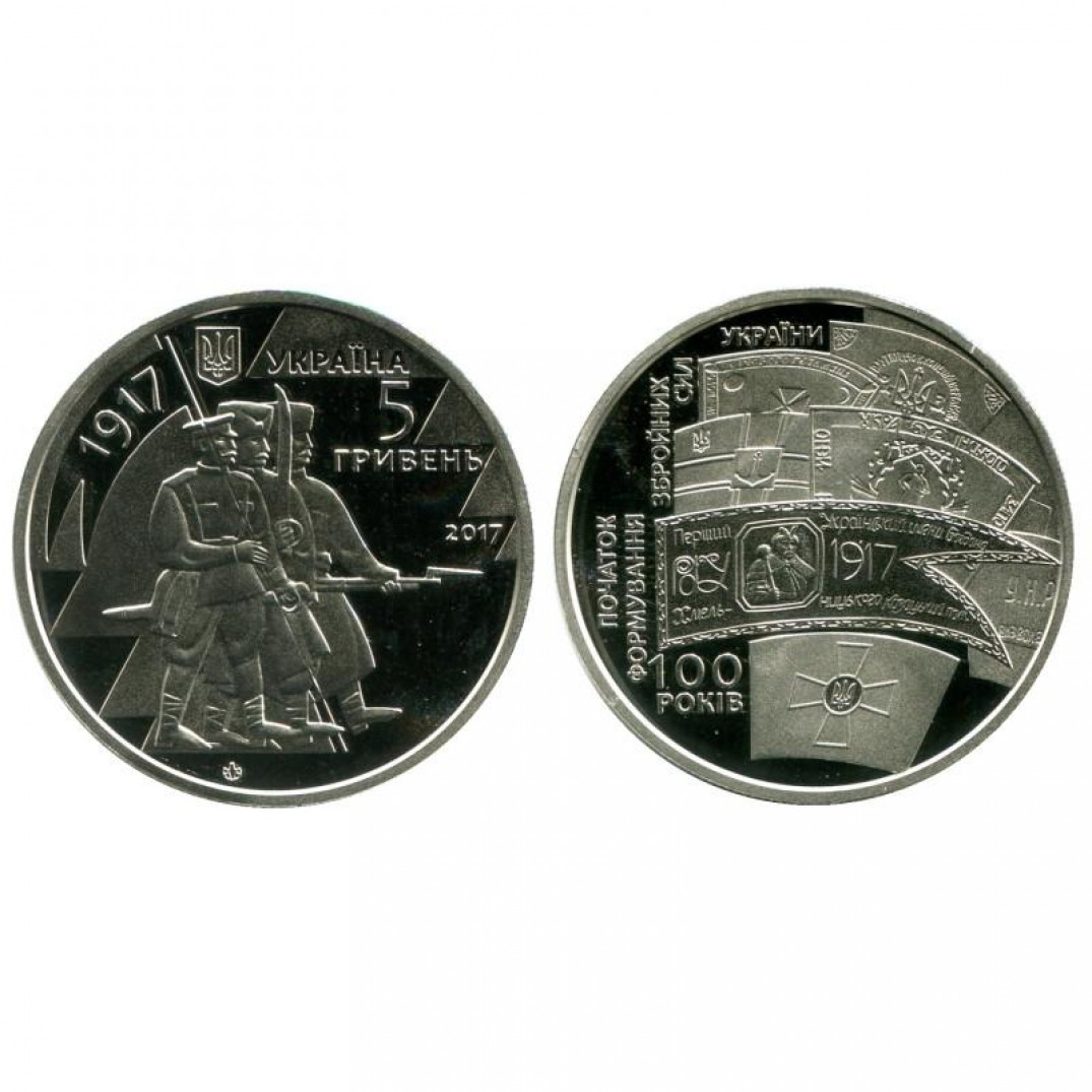 5 гривен - 100 лет со времени образования Первого украинского полка имени Богдана Хмельницкого и начала формирования украинских вооруженных сил, Украина, 2017 год