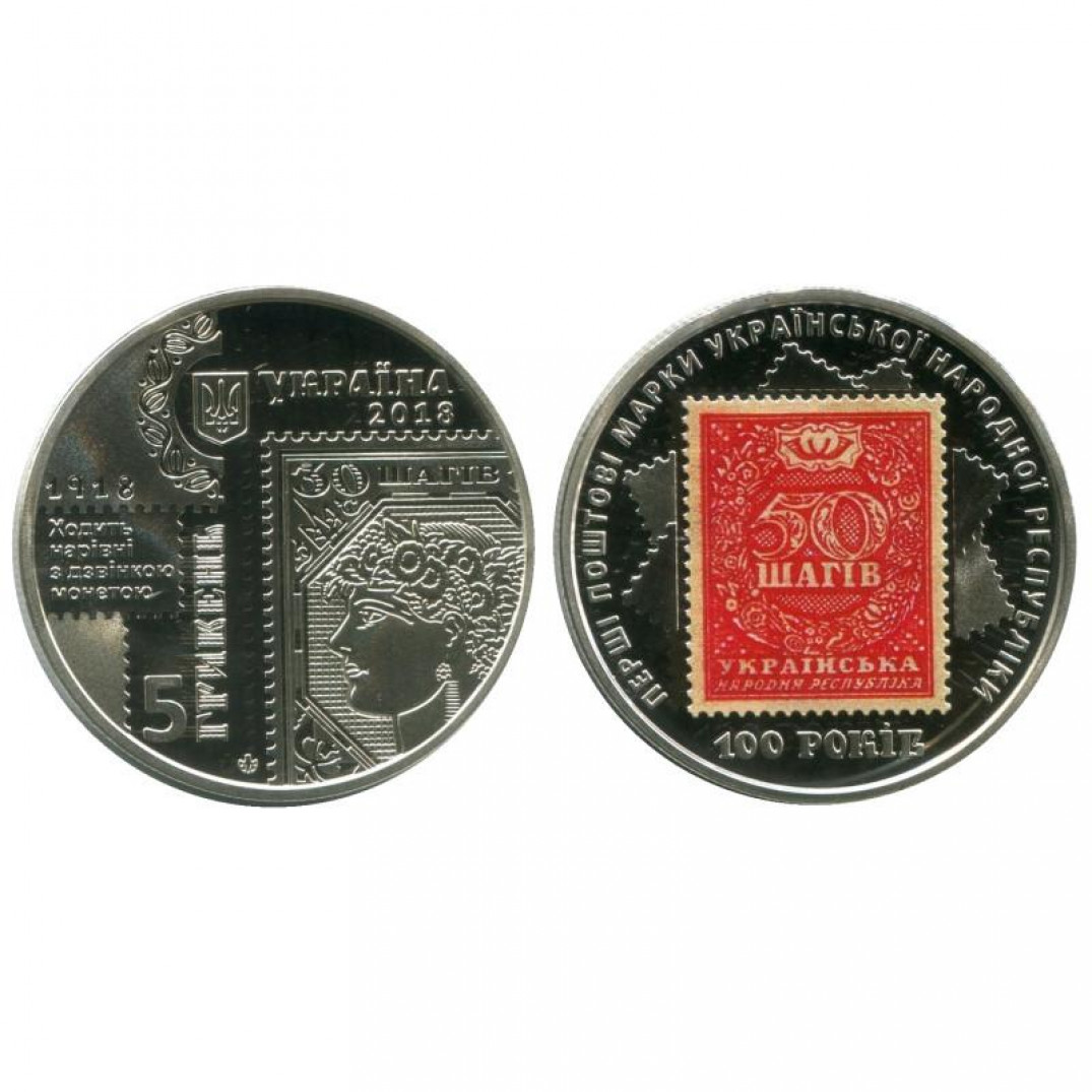 5 гривен - 100-летие выпуска первых почтовых марок Украины, Украина, 2018 год