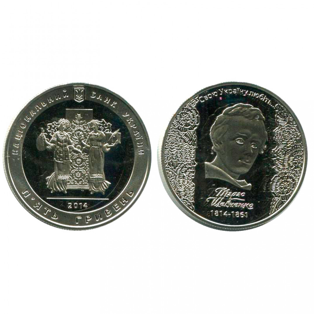 5 гривен - 200-летия со дня рождения Т. Г. Шевченко, Украина, 2014 год