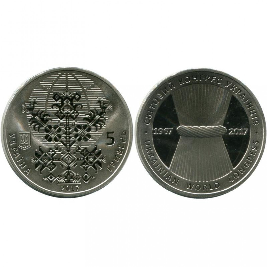 5 гривен - 50 лет Мировому конгрессу украинцев, Украина, 2017 год