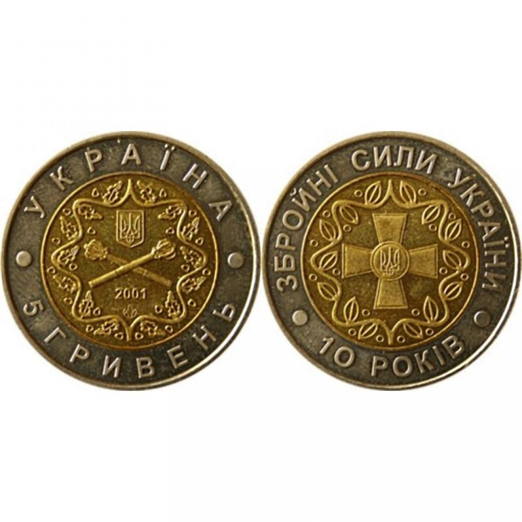 5 гривен - 10-летие Вооруженных Сил Украины, Украина, 2001 год, (биметалл)