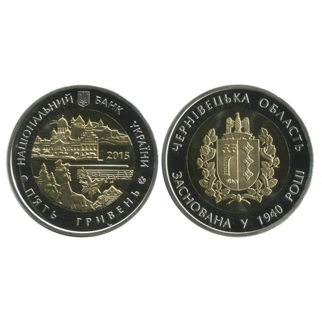 5 гривен - 75 лет Черновицкой области, Украина, 2015 год (биметал)