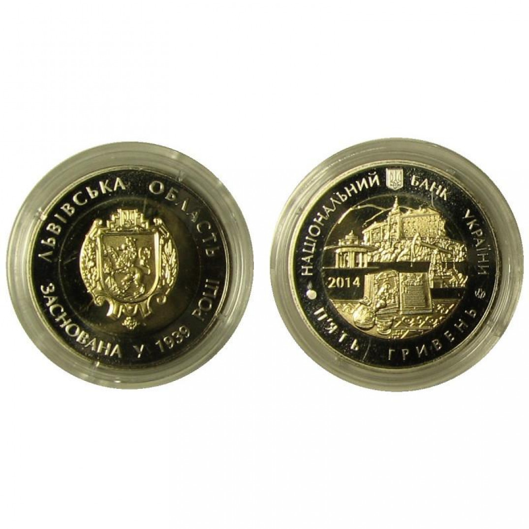 5 гривен - 75 лет Львовской области, Украина, 2014 год, (биметалл)
