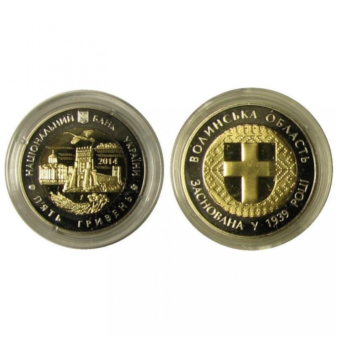 5 ГРИВЕН - (биметал)75 лет Волынской области ,Украина,2014 год