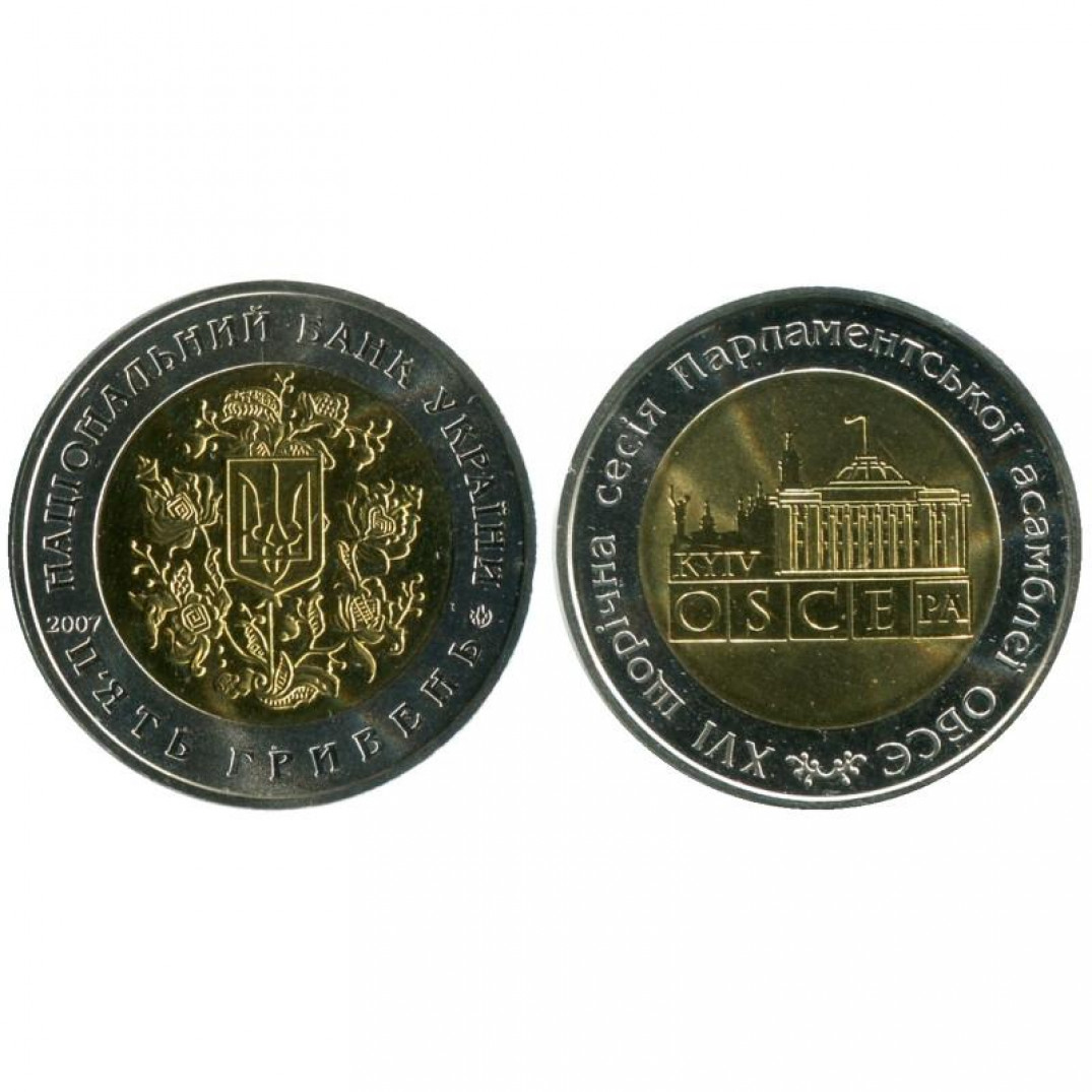 5 ГРИВЕН - (биметал)XVI сессия Парламентской ассамблеи Организации по безопасности и сотрудничеству в Европе ,Украина,2007 год