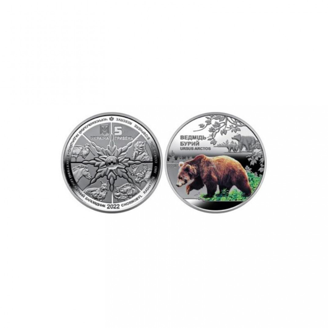5 гривен - Чернобыльский радиационно-экологический биосферный заповедник - Бурый медведь, Украина, 2022 год