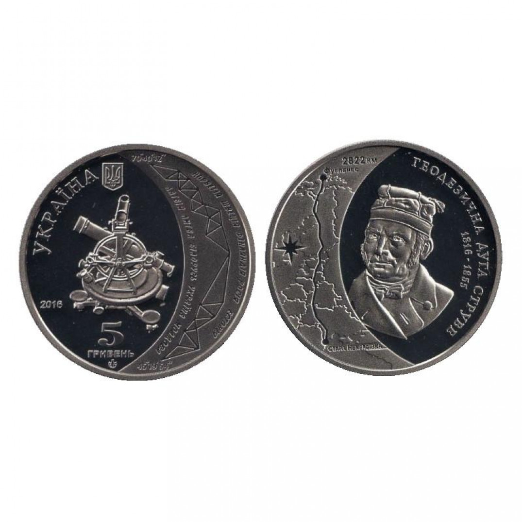 5 гривен - Геодезическая дуга Струве (к 200-летию начала осуществления астрономо-геодезических работ), Украина, 2016 год