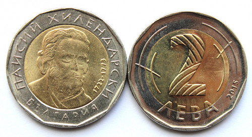 2 лева - Святой Паисий Хилендарский, Болгария, 2015 год