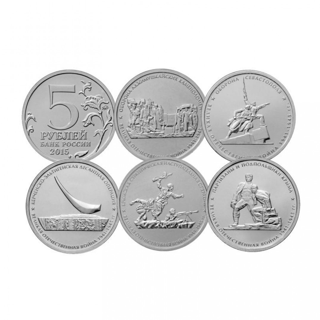 Набор монет - Подвиг советских воинов, сражавшихся на Крымском полуострове, (5 монет)