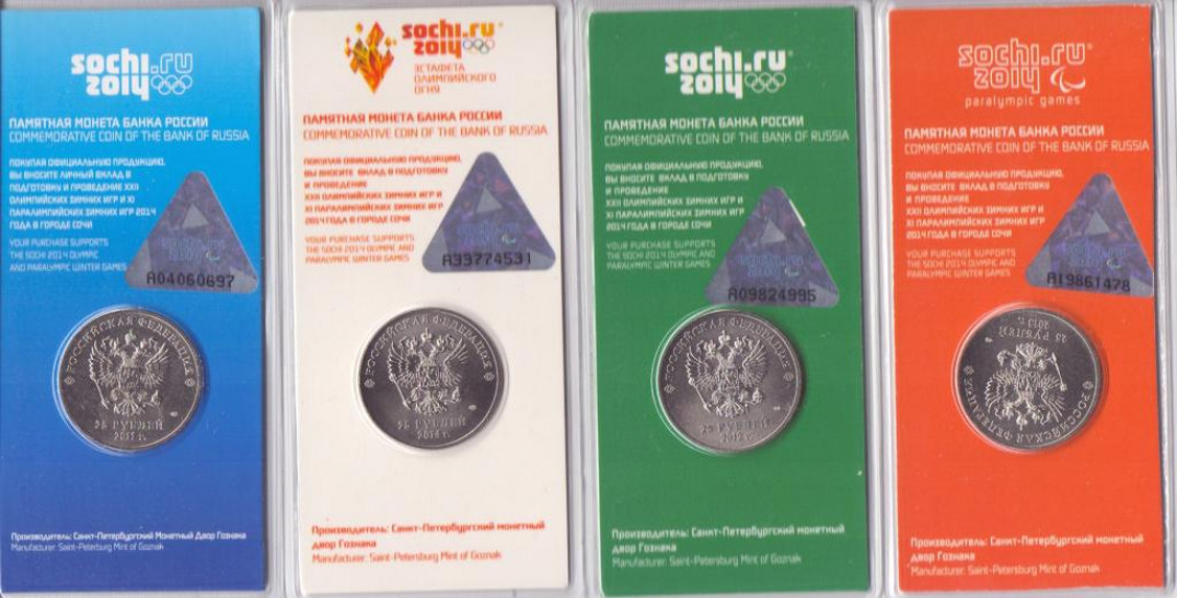 Набор монет - Сочи 2014, (4 монеты в цвете)