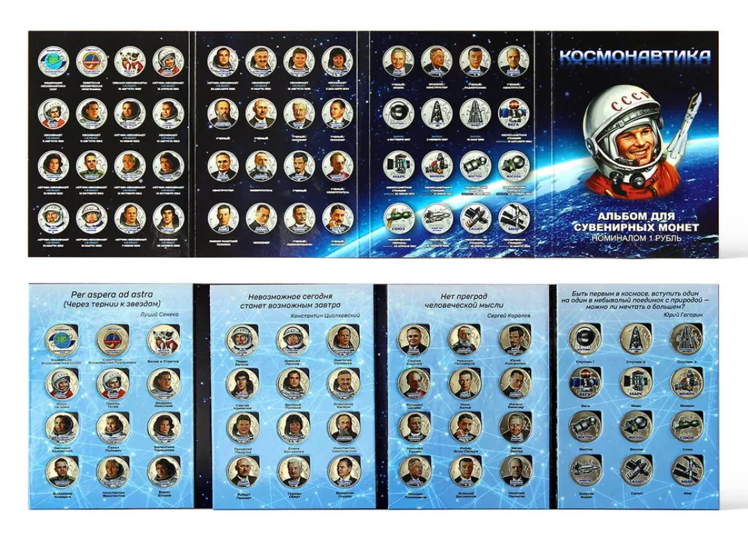 Набор монет - Космонавтика, (48 монет в альбоме)