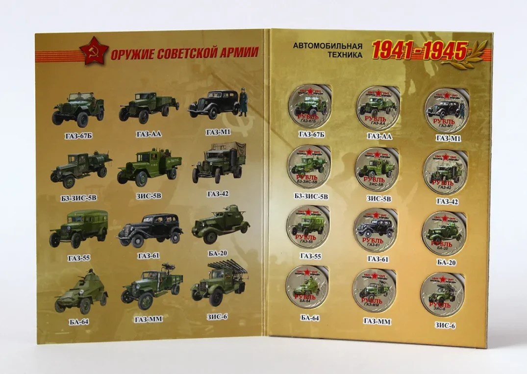 Набор монет - Оружие советской армии - Автомобильная техника, (12 монет в альбоме)