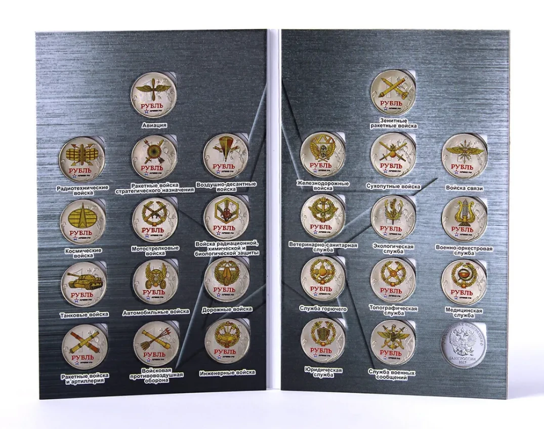 Набор монет - Знаки различий вооруженных сил России, (25 монет в альбоме)