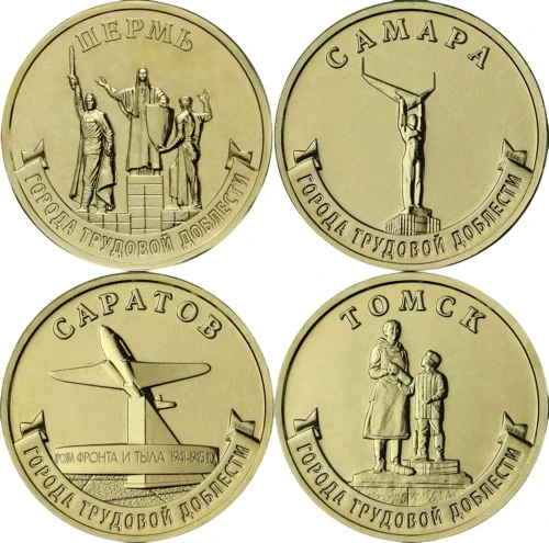 10 рублей - Города трудовой доблести - Ижевск, Иркутск, Казань, Магнитогорск, 2022 год