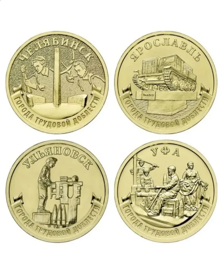 10 рублей - Города трудовой доблести - Ульяновск, Уфа, Челябинск, Ярославль, 2025 год