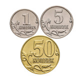 Набор из 3-х монет 1, 5 и 50 копеек 2023 г. ММД