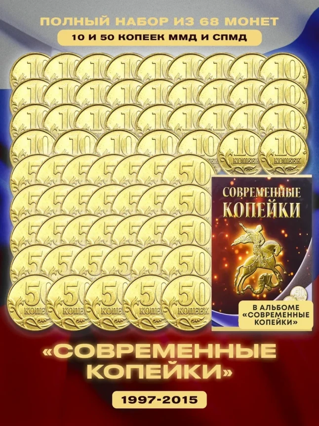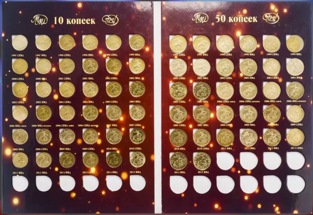 Набор монет 10 и 50 копеек 1997-2015 гг., в альбоме
