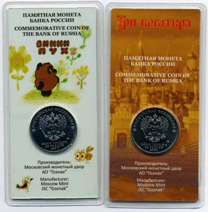 25 рублей - мультфильмы "Винни Пух и Три Богатыря", 2017 год (в цвете)