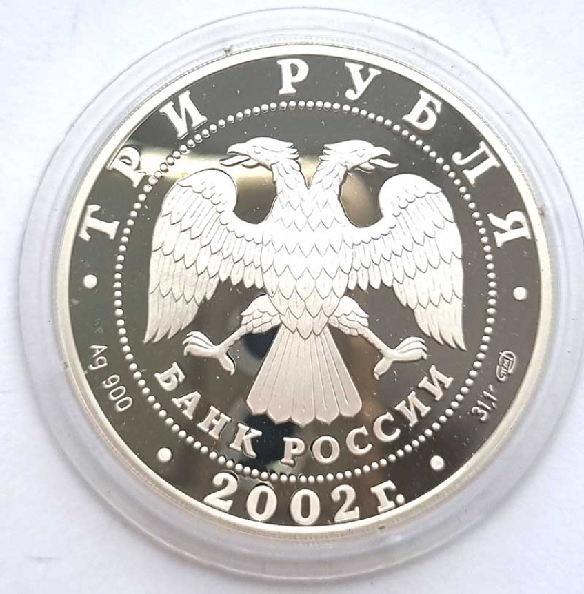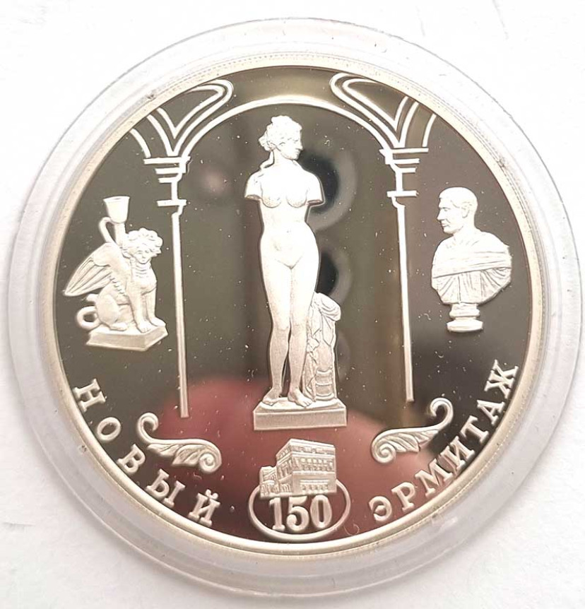 3 рубля - 150 лет Новому Эрмитажу, 2002 год, серебро