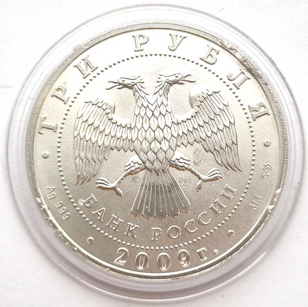 3 рубля - Георгий Победоносец, 2009 год СПМД, серебро