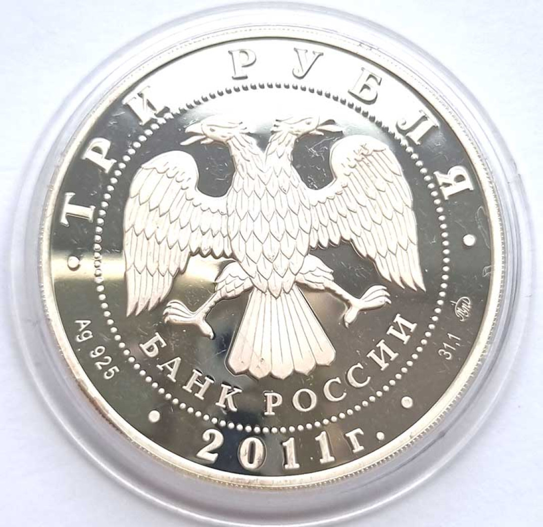 3 рубля - Георгий Победоносец, 2009 год, СПМД, серебро