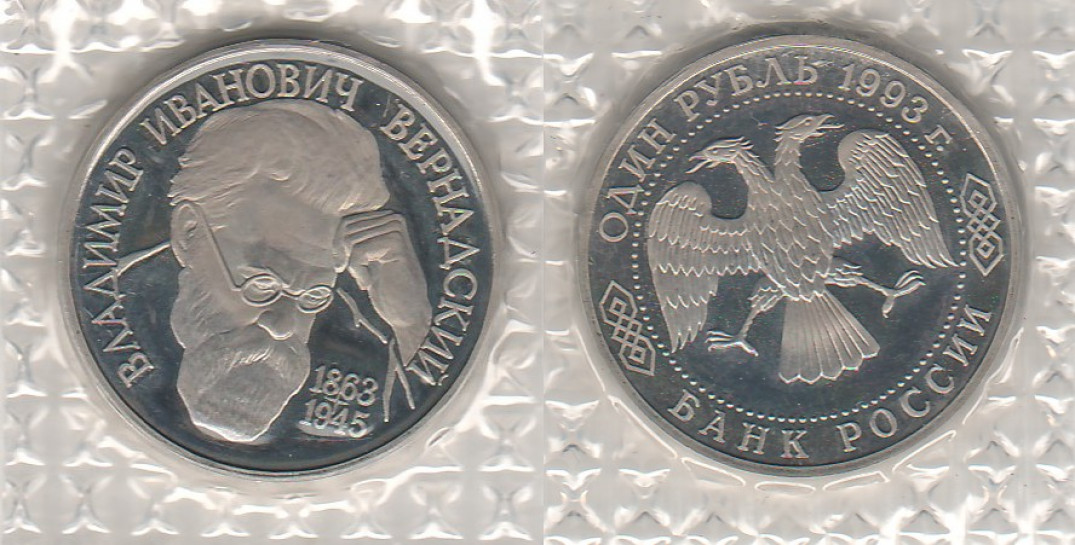 1 рубль - В.И.Вернадский, 1993 год, PROOF (без знака монетного двора)