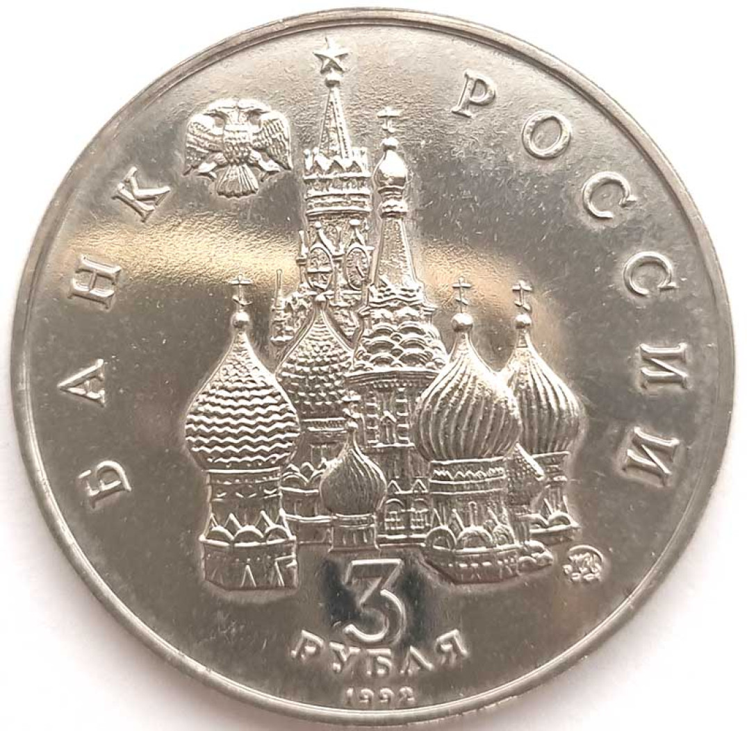 3 рубля - Победа демократических сил России 19-21 августа 1991 года, 1992 год, PROOF