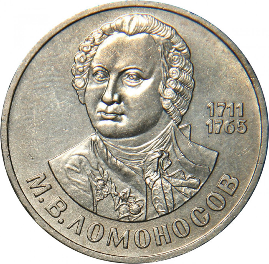 1 рубль - 275 лет со дня рождения великого русского ученого М.В.Ломоносова, 1986 год