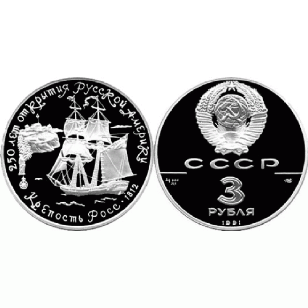 3 рубля - Крепость Росс, 1991 год, PROOF