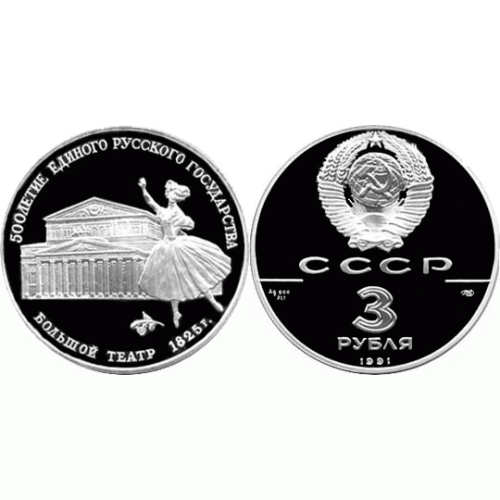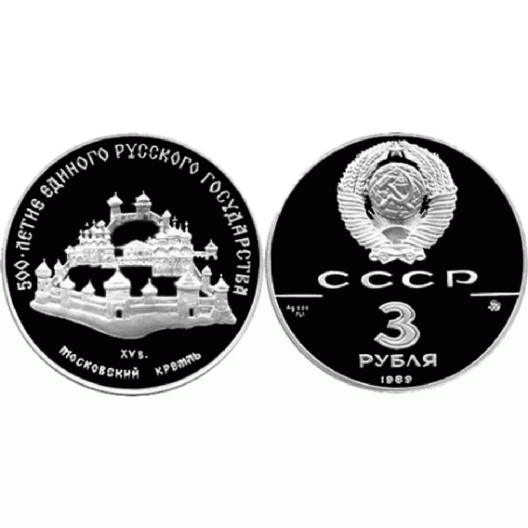 3 рубля. Московский Кремль, XII-XVI вв, 1989 год, PROOF