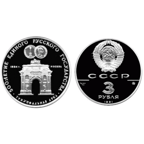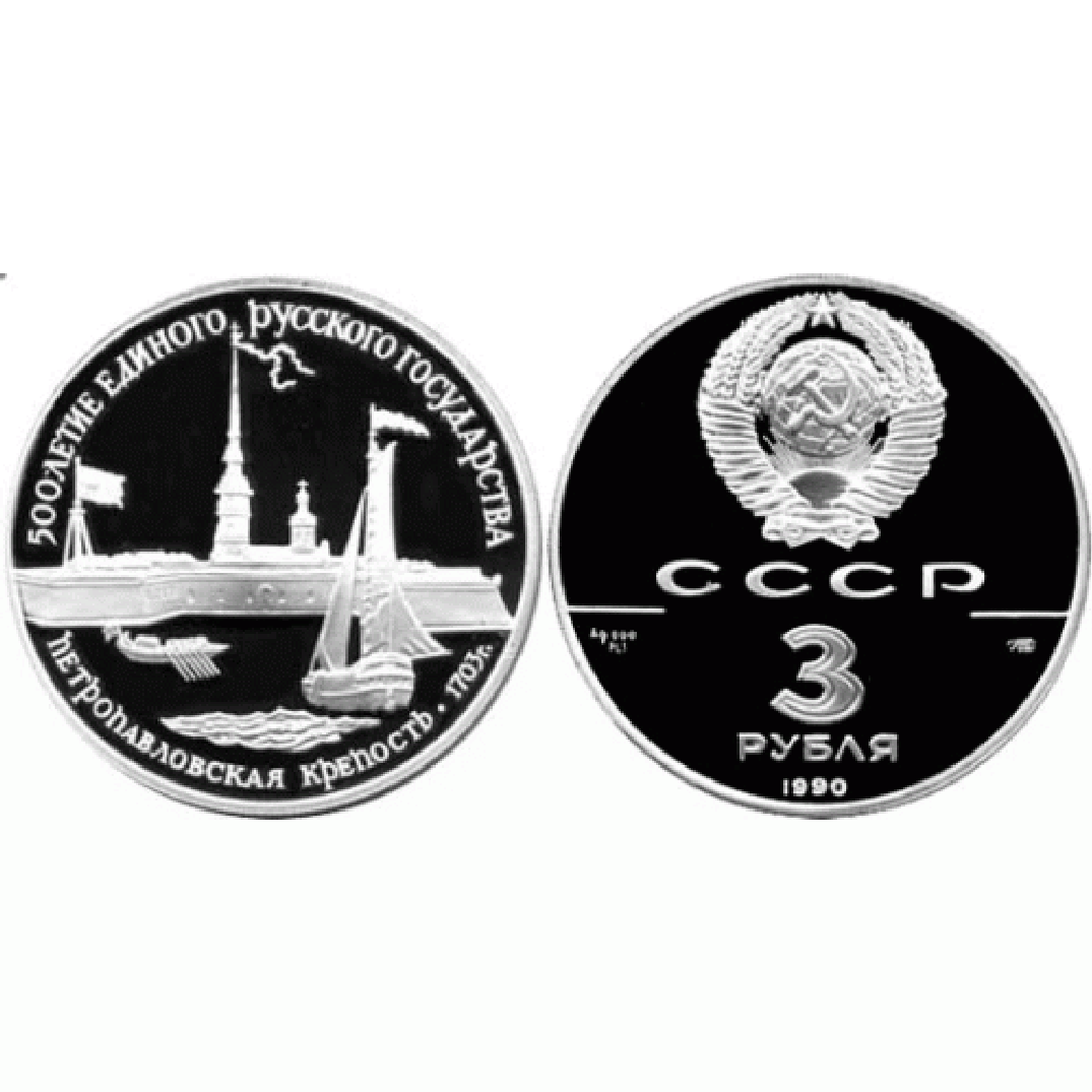 3 рубля - Петропавловская крепость, XVIII в. ЛМД, 1990 год, PROOF