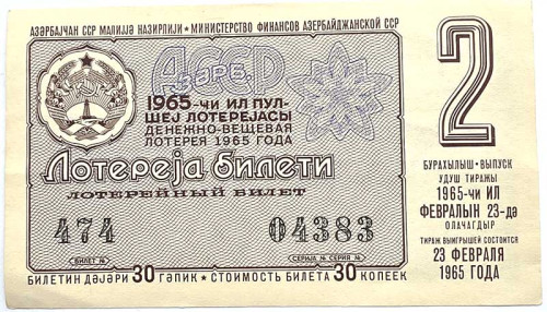 Билет денежно-вещевой лотереи 23 февраля 1965 год