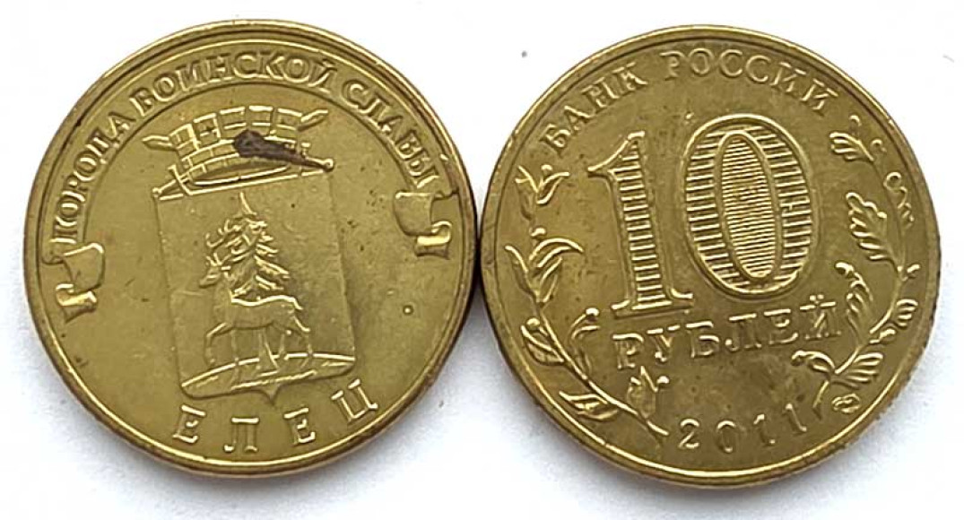 10 рублей - ГВС Елец, 2011 год, из оборота