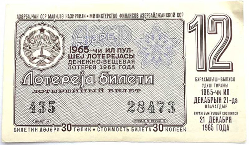 Билет денежно-вещевой лотереи 21 декабря 1965 год