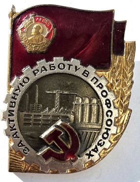 Значок - За активную работу в профсоюзе, тяжелый