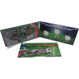 - Описание: Блистерный буклет для памятных монет 25 рублей и банкноты России футбольной тематики. Блистерный буклет для хранения монет выполнен из ламинированного картона, иллюстрированного под определенную серию монет. Ячейки из прозрачного пластика (ПВХ), поэтому Вашу коллекцию можно увидеть с обеих сторон, размер капсулы соответствует диаметру номинала, при размещении, на монету необходимо надавить до щелчка