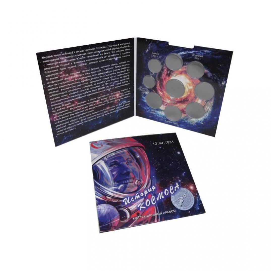 - Описание: Альбом предназначен для следующих монет: 10 рублей 2001 г. 40 лет космическому полету Ю.А. Гагарина 2 рубля 2001 г. 40 лет космическому полету Ю.А. Гагарина 10 рублей 2011 г. 50 лет первого полета человека в космос 1 рубль 1979 г. XXII летние олимпийские игры, Москва-1980, Монумент 1 рубль 1981 г. 20 лет первого полета человека в космос, Ю.А. Гагарин 1 рубль 1983 г. 20 лет со дня полета первой женщины-космонавта В. Терешковой в космос 1 рубль 1987 г. 130 лет со дня рождения К.Э. Циолковского 3 рубля 1992 г. Международный год Космоса 25 рублей 2021 г. 60-летие первого полета человека в космос