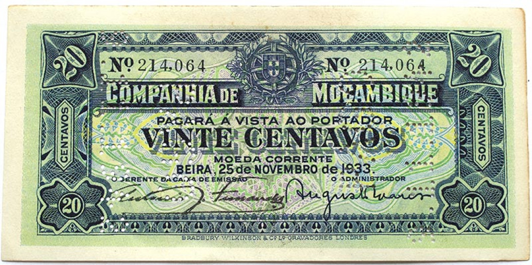 Банкнота 20 сентаво, 1933 год, Мозамбик