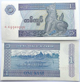 Банкнота 5 кьят - Бирма, 1973 год, UNC