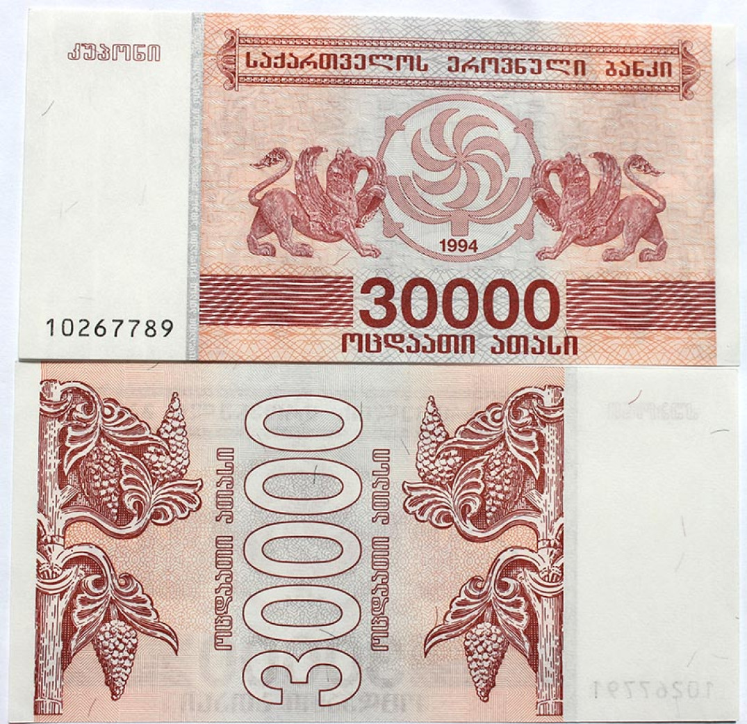 Банкнота 2 лари - Грузия, 1995 год, UNC