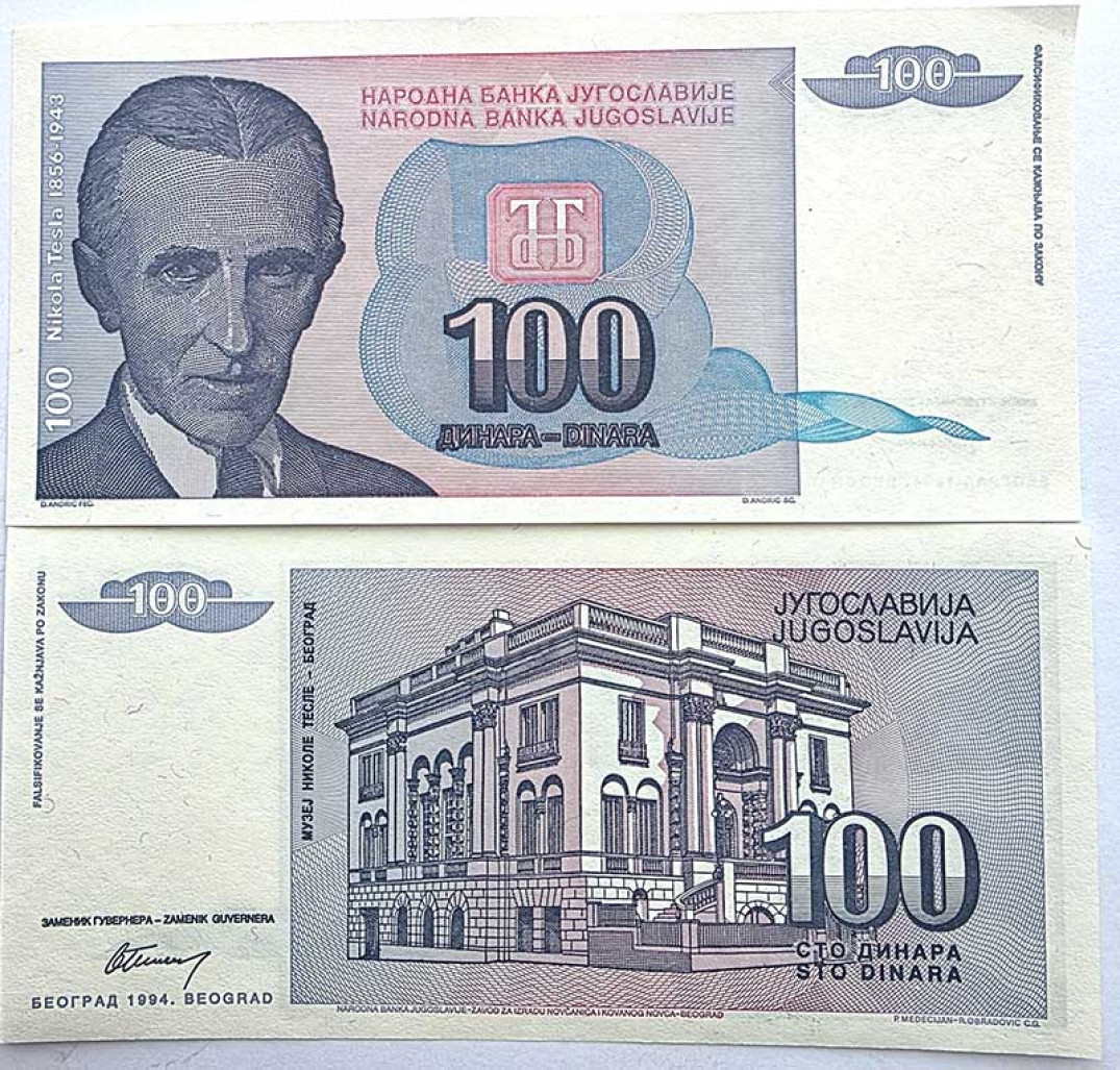 Банкнота 100 динар - Югославия, 1994 год, UNC
