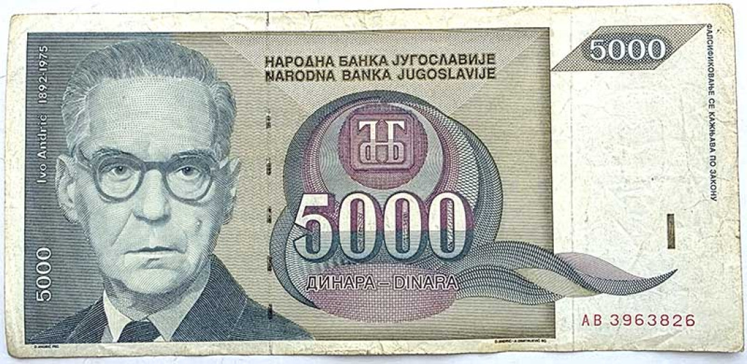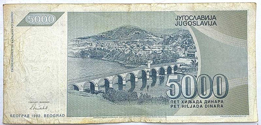Банкнота 5000 динар - Югославия, 1992 год
