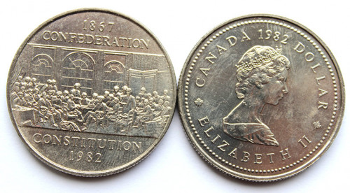 1 доллар - 115 лет Конституции, Канада, 1982 год, UNC